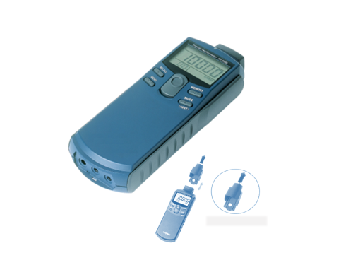Der HT-5500 erlaubt sowohl die Kontaktmessung als auch die berührungslose Drehzahl-, Umfangsgeschwindigkeits-, Umdrehungs- und Zyklusmessung in einem Gerät